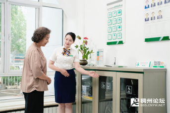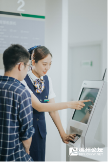 图:柜面服务人员为老年客户介绍适老化服务设施