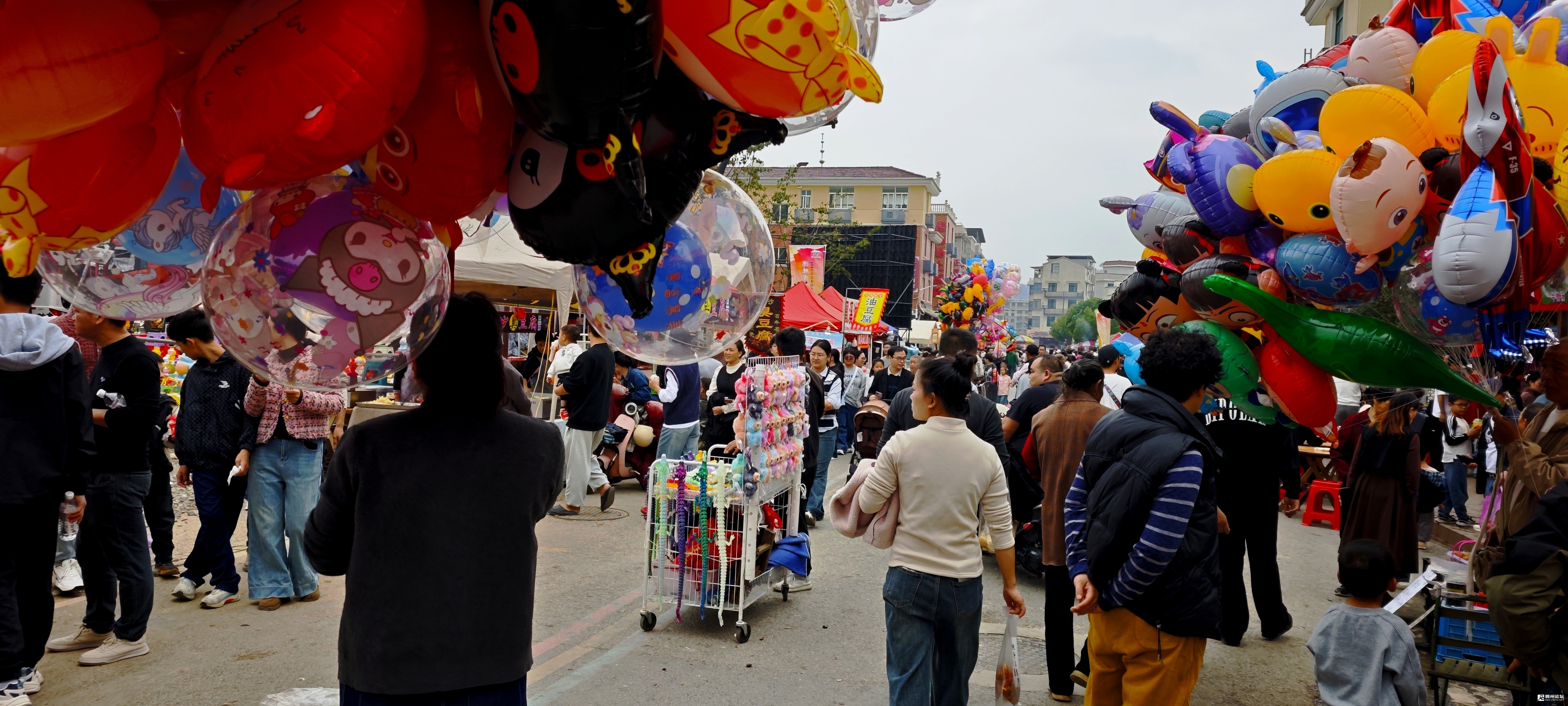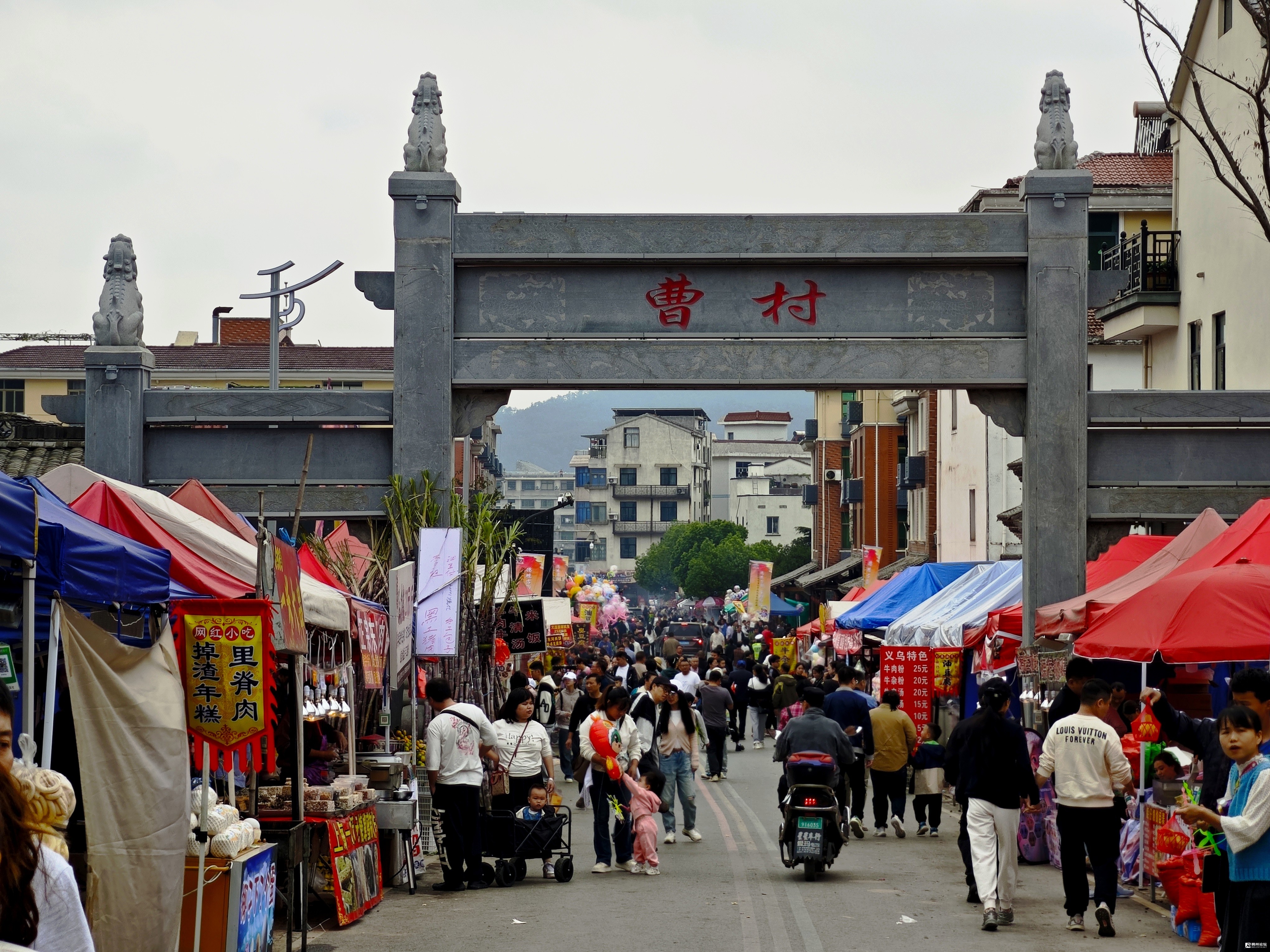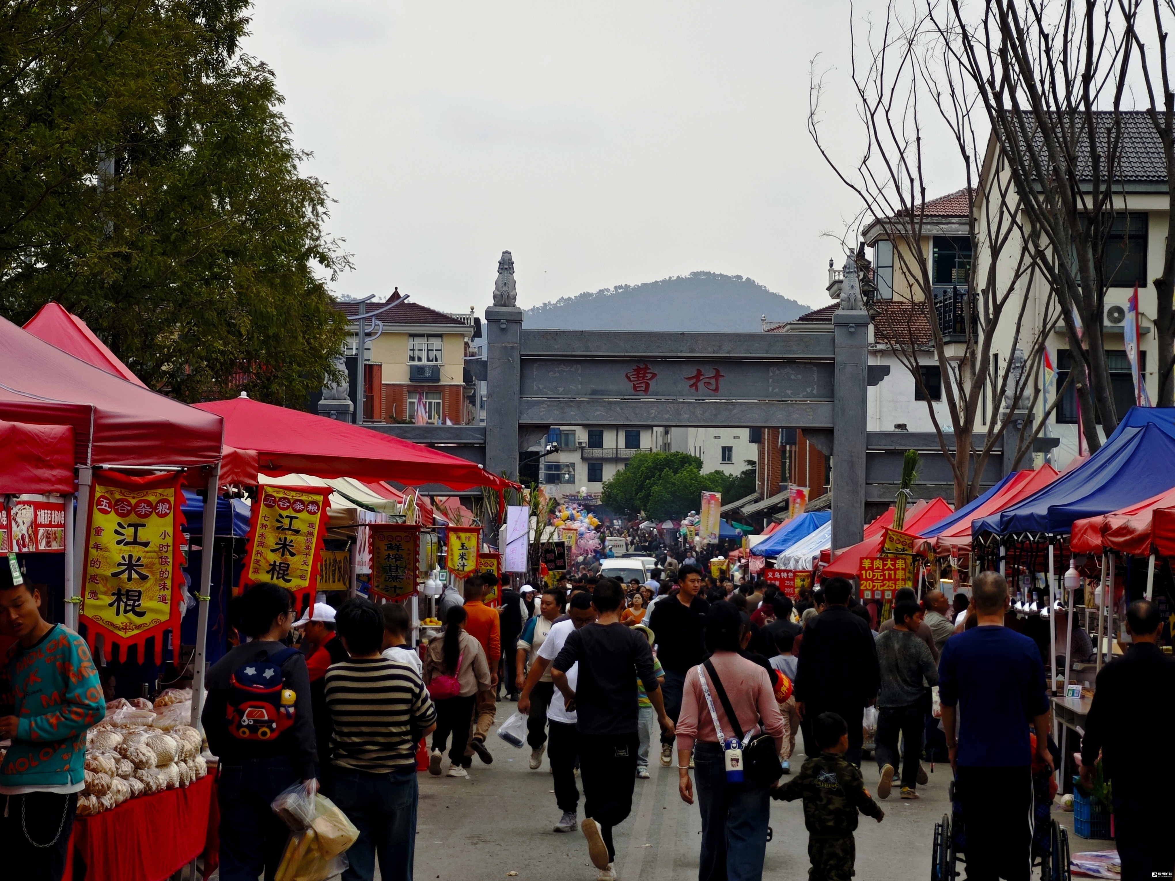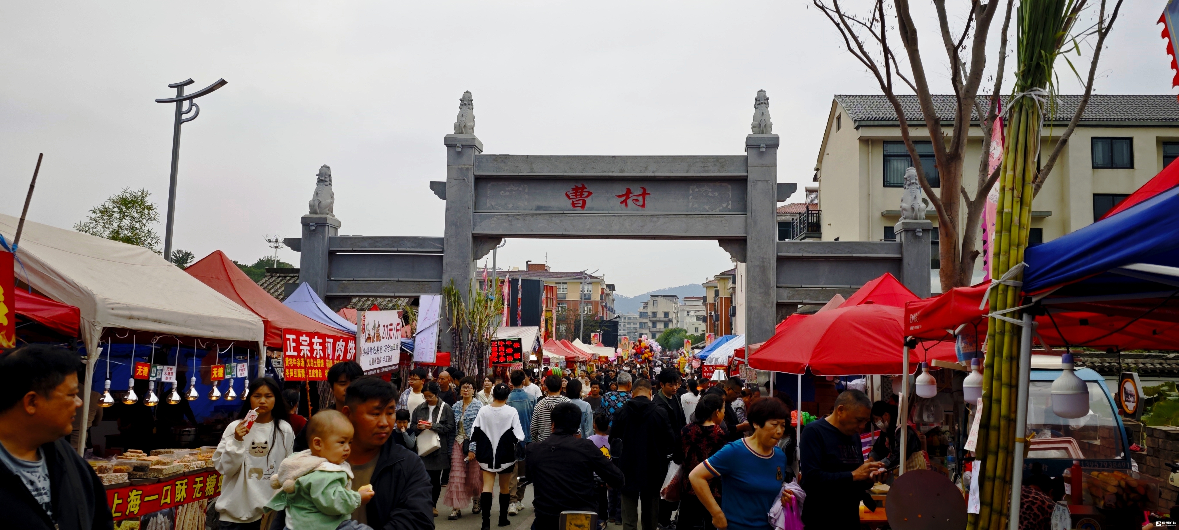 恰逢周日。九月初六,也就是曹村重阳交流和文旅活动的前一天,市集上的游客已是川流不息络绎不绝。