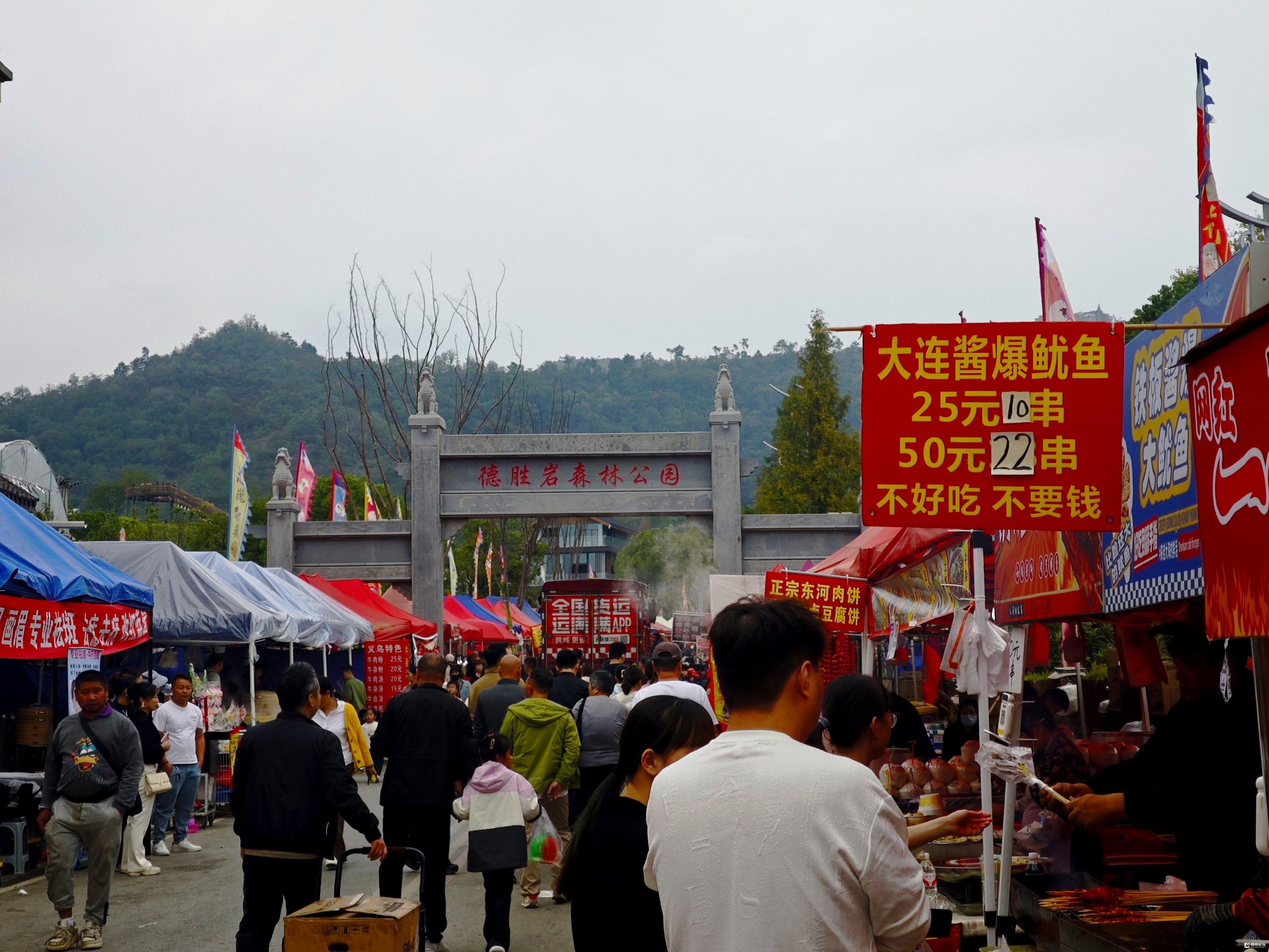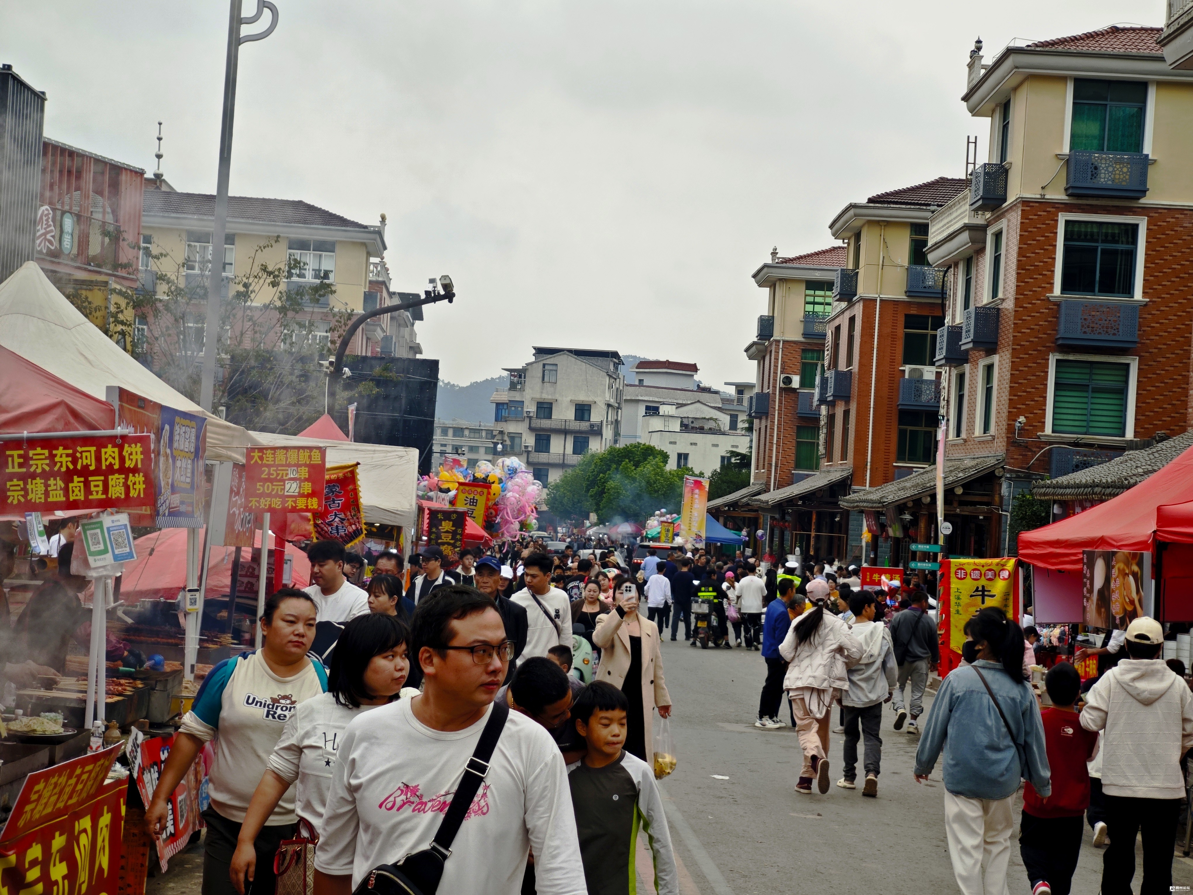 两旁的商铺,以美食小吃居多,已是围满了消费者。大家纷纷购买自己喜欢的商品和食物。