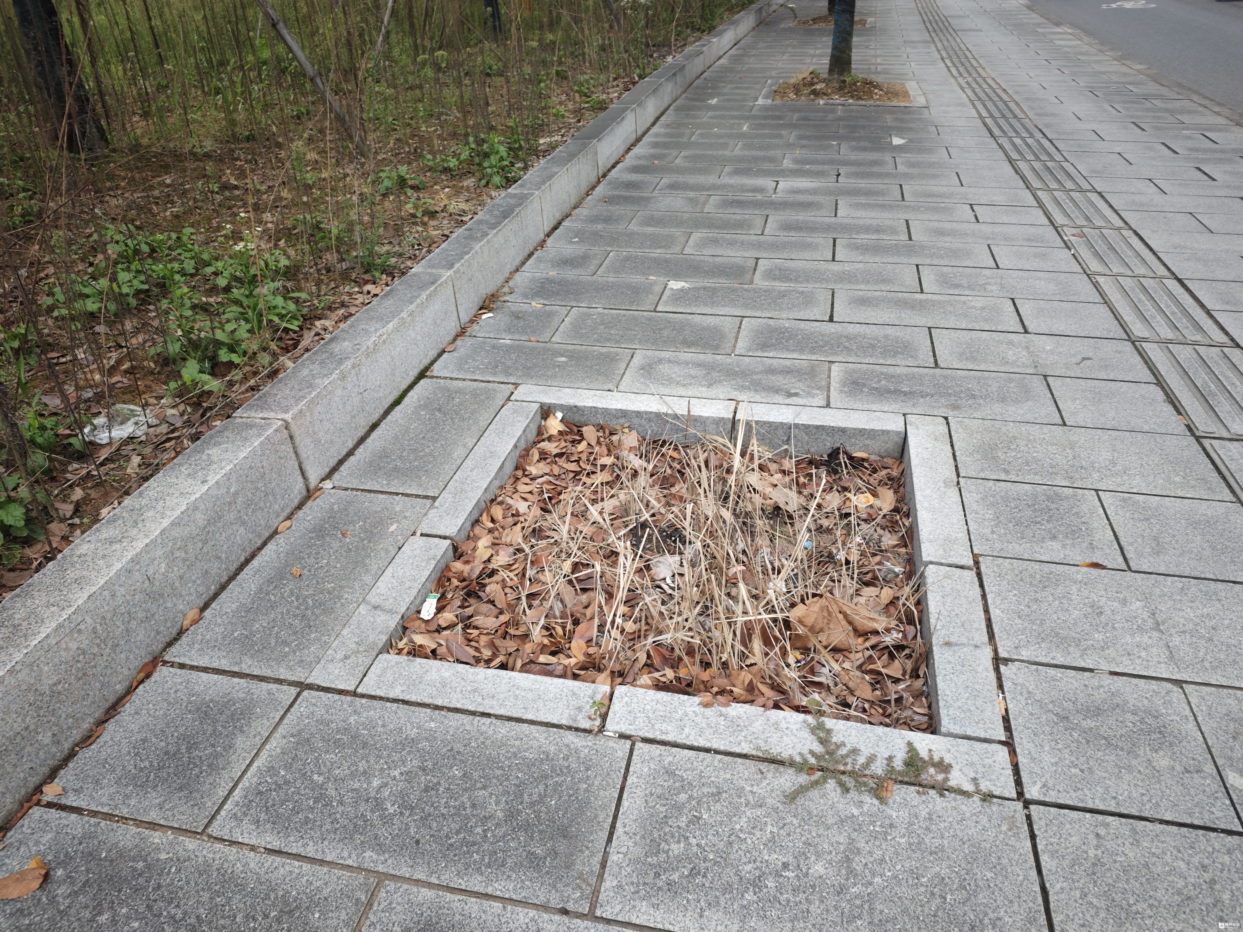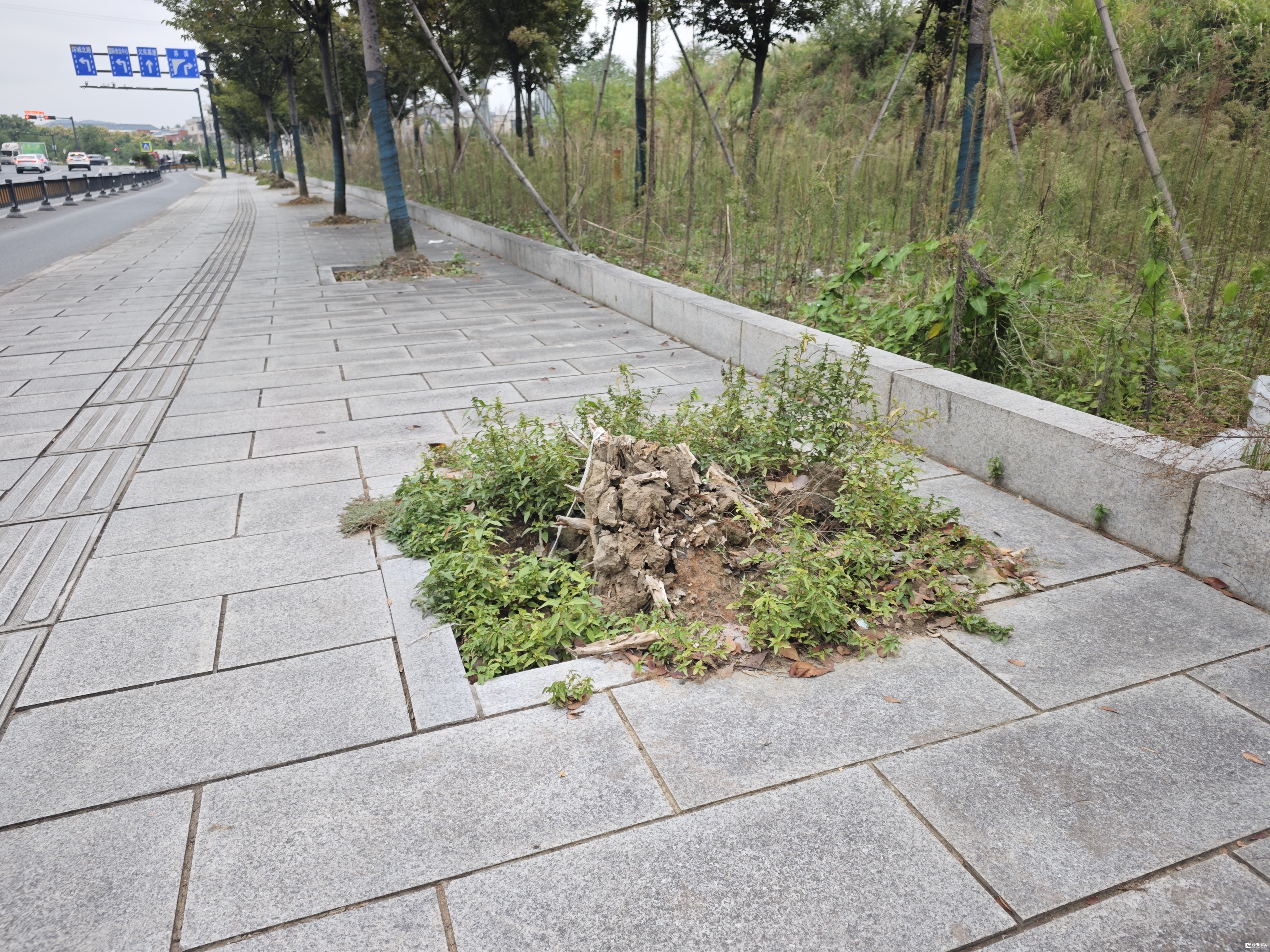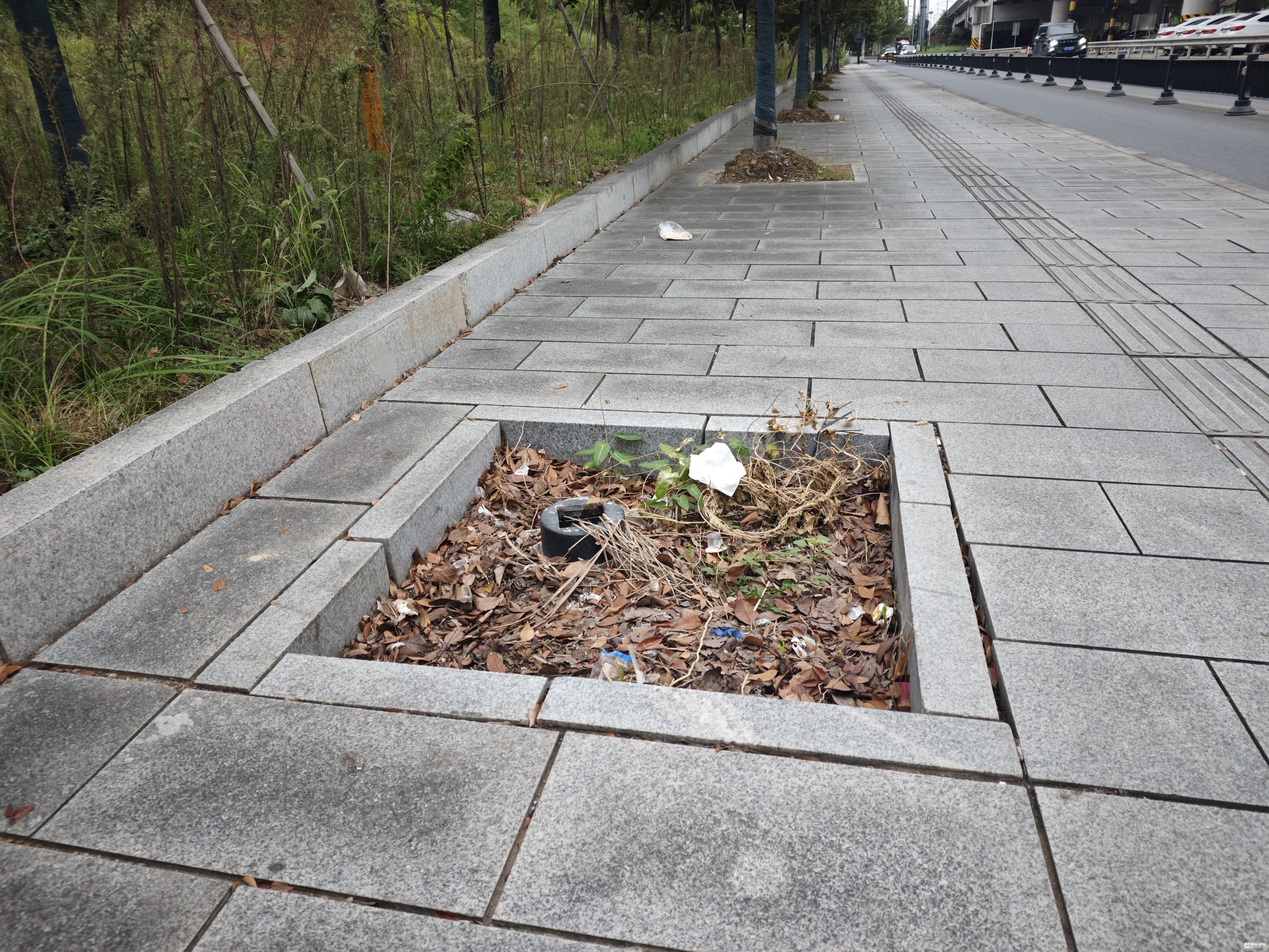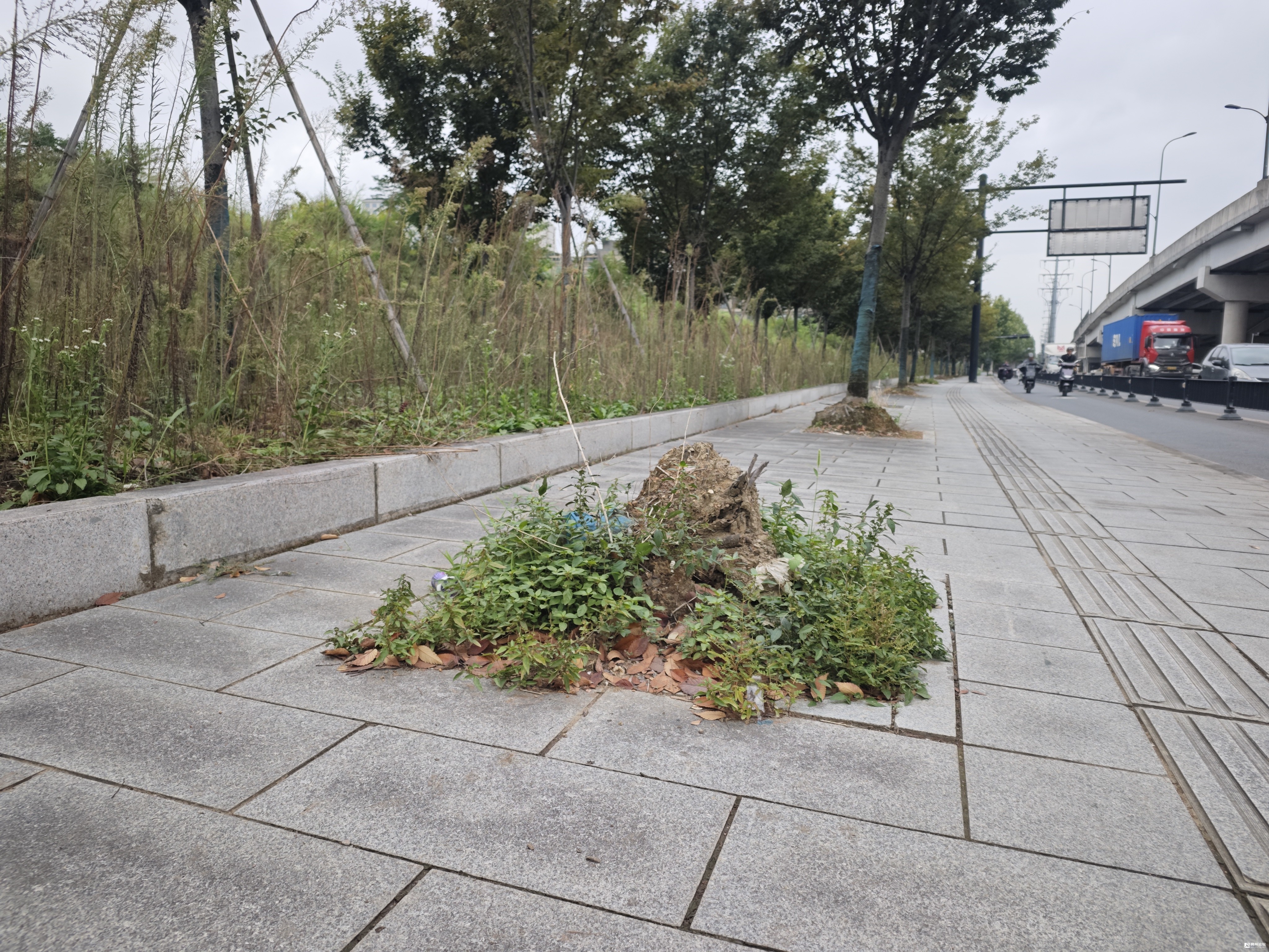 看如此弃之不顾的样子,倒不如把那些树坑拆了,铺上花岗岩地砖,让人走路呢。