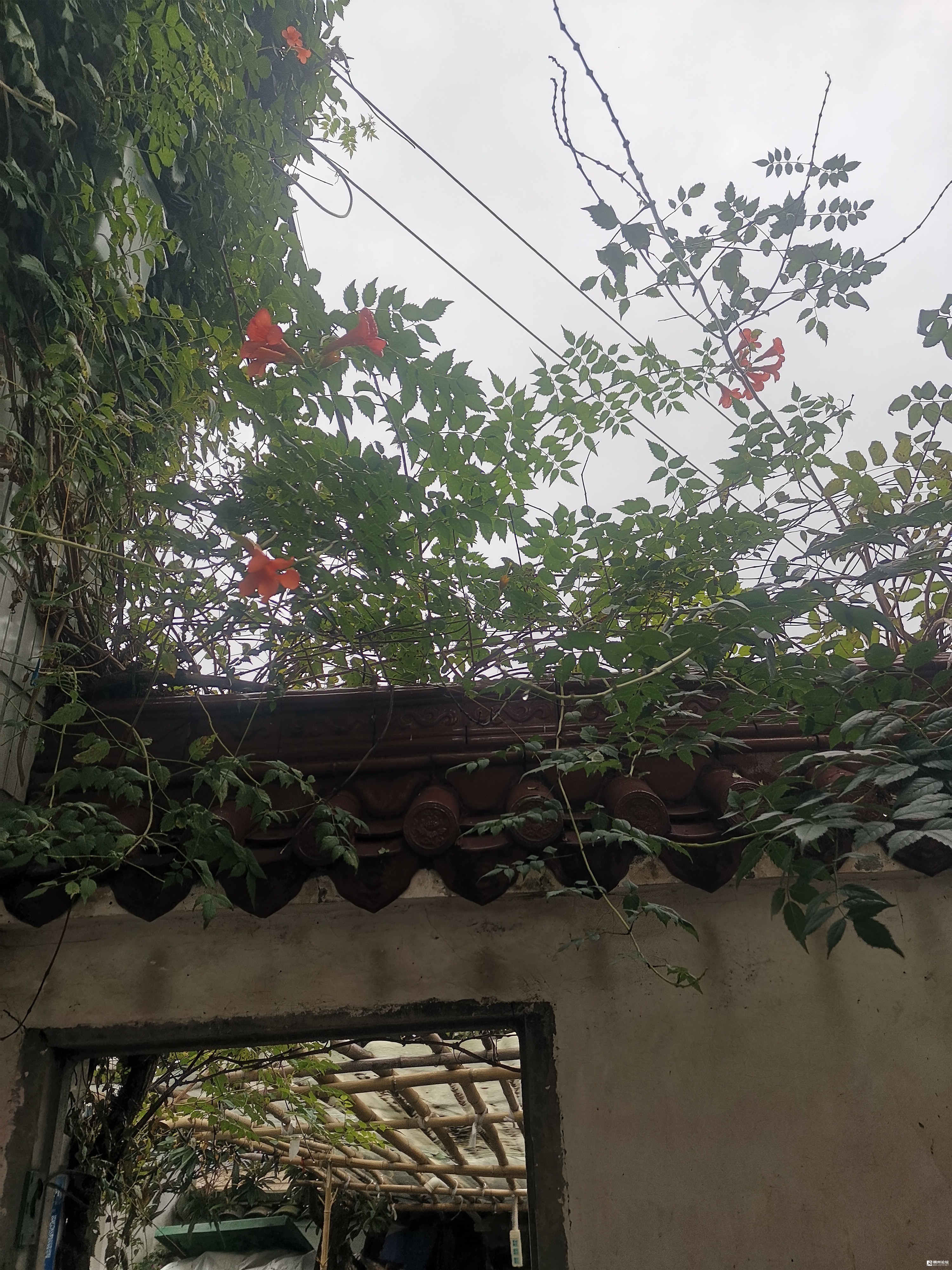 十月末的凌霄花 文:庸非 围墙举起三两支火把 雨是突然凉的 在惊蛰的邮戳 抵达之前 那些未寄出的橘色信封 被风揉皱又展平 每一个字都蜷成翅膀 等待云层变脆的刹那 寒潮碾过青石板 瓦罐里积蓄的夏天 开始褪去釉彩 唯有叶脉的遗嘱 还在固执地延伸 穿堂风翻阅日历 水珠在蛛网上校准 季节的偏旁 当月光也长出绒毛 绿衣衫就悬在 屋檐与屋檐的默契里 那些被蝉鸣熨烫过的 暗语渐渐沉入 井圈晃动的年轮 而花盏仍举着 通往秋天的路标