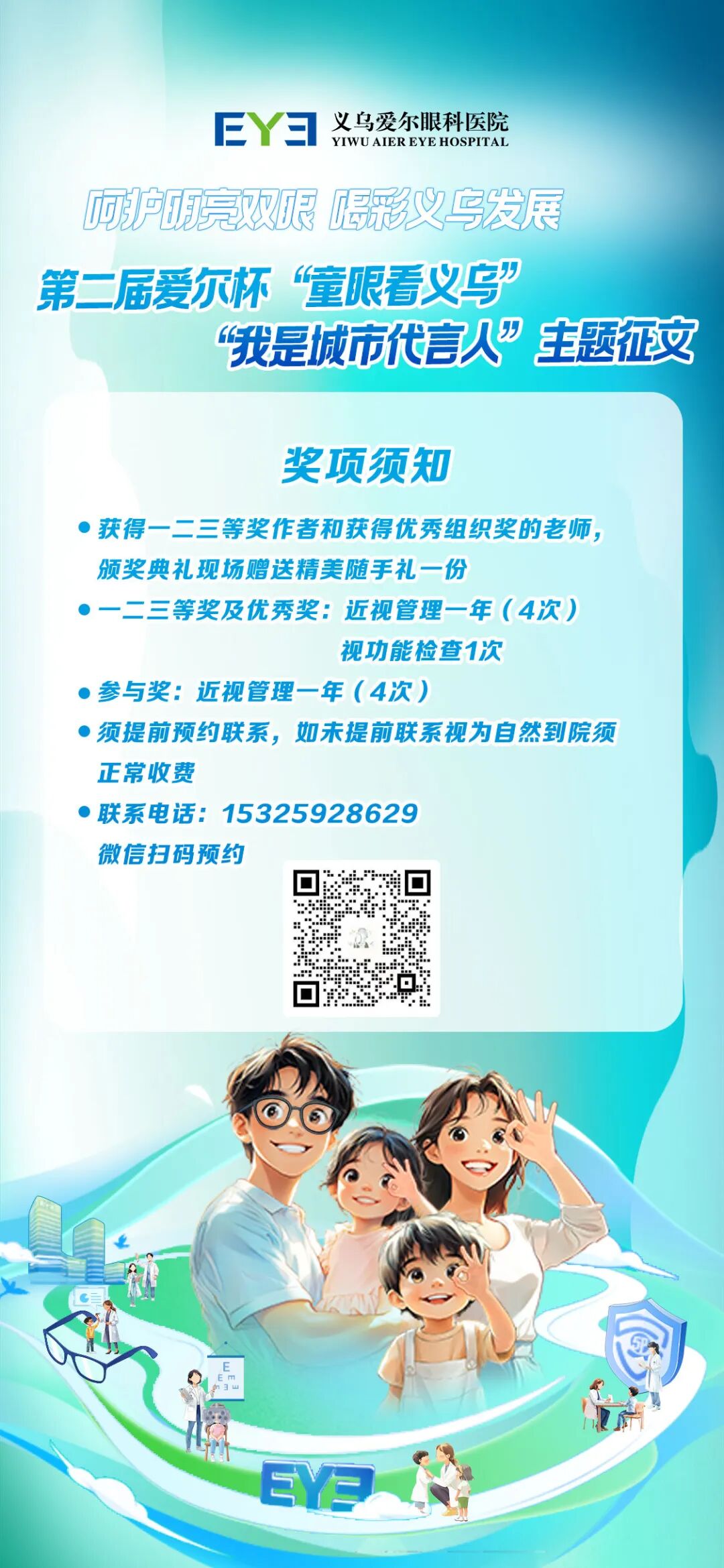 呵护明亮双眼,喝彩义乌发展!由义乌市融媒体中心牵头义乌市关工委、义乌市科协、义乌市红十字会等相关部门联合主办,特邀义乌市作家协会作为支持单位,由义乌爱尔眼科医院冠名协办的2025第二届“爱尔杯·童眼看义乌·我是城市代言人”主题征文活动,自6月6日全国爱眼日正式启动以来,反响热烈,吸引了众多学校老师和学生的积极参与。截至9月30日截稿日,共收到全市50余所学校近2200名学生的征文投稿,其中小学1-3年级段投稿600余篇,小学4-6年级段投稿1500余篇,总投稿数超出预期目标。