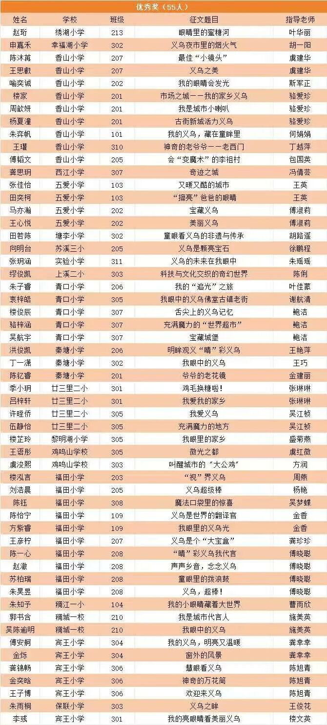 本次主题征文围绕“呵护明亮双眼,喝彩义乌发展”,结合“童眼看义乌·我是城市代言人”角度展开写作,参与对象为小学1年级到6年级的小学生。自征文启动以来,众多学校老师积极鼓励学生参与到主题征文活动中,其中福田小学、宾王小学、香山小学、西江小学、廿三里二小、前洪小学等几所学校的征文投稿量均超过了100篇。全市共有20余所学校的50余个班级征文投稿数量均达到20篇以上。由此可见此次主题征文活动受到了全市众多学校老师的高度重视和积极支持,学生参与面较为广泛。