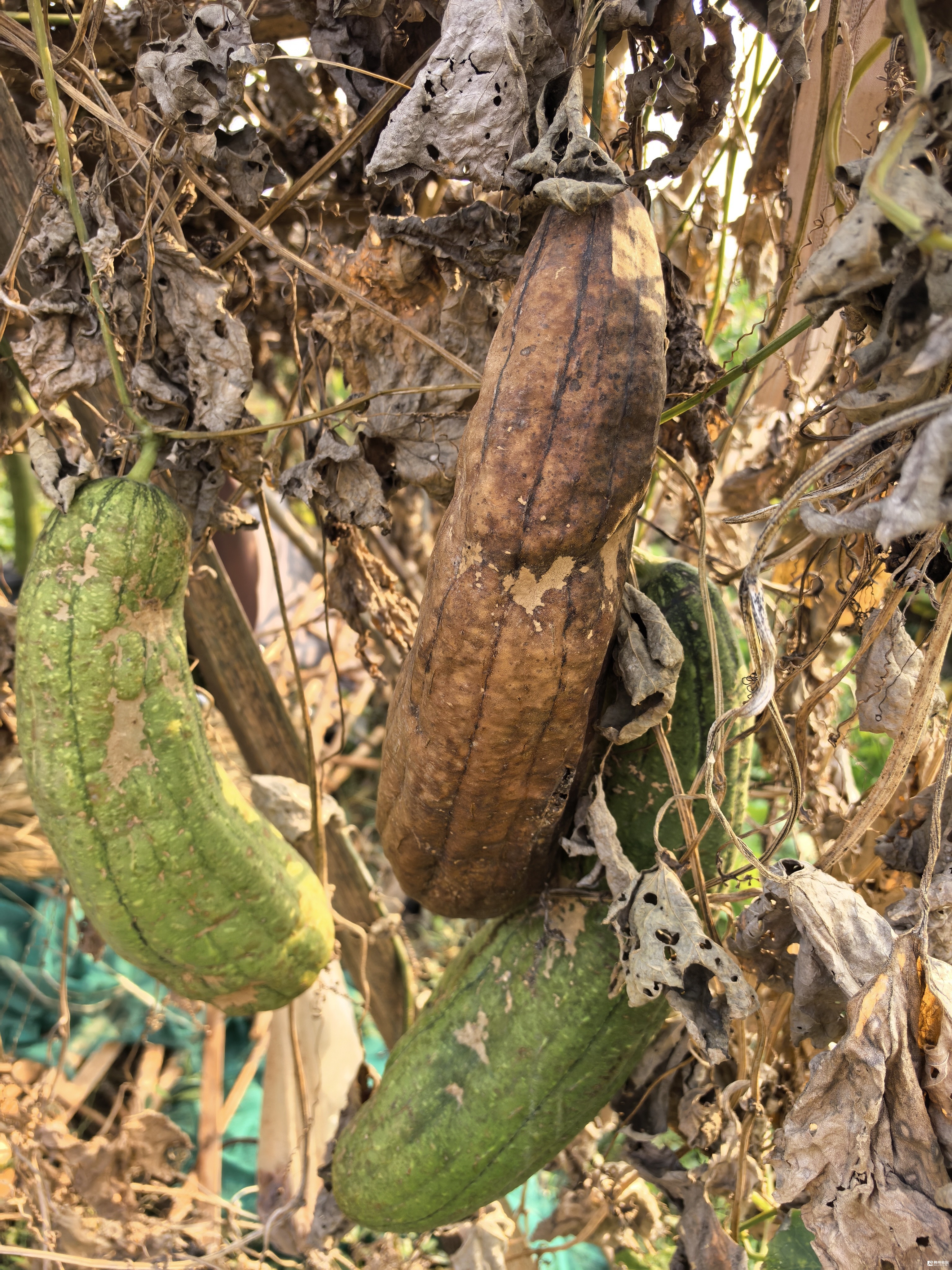 老了,不中用了。挂在藤上慢慢地老去吧。