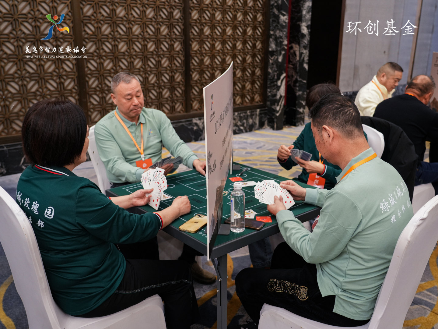 开幕式上,义乌市智力运动协会名誉主席刘世玉致辞,强调掼牌运动融合策略、心理博弈与团队协作,既是娱乐方式,更是智力较量与文化传承,为赛事定下 “智趣交融、以牌会友、文化传承” 的基调。运动员与裁判员代表先后宣誓,承诺恪守体育精神、秉持公平公正原则,彰显赛事的严谨规范。