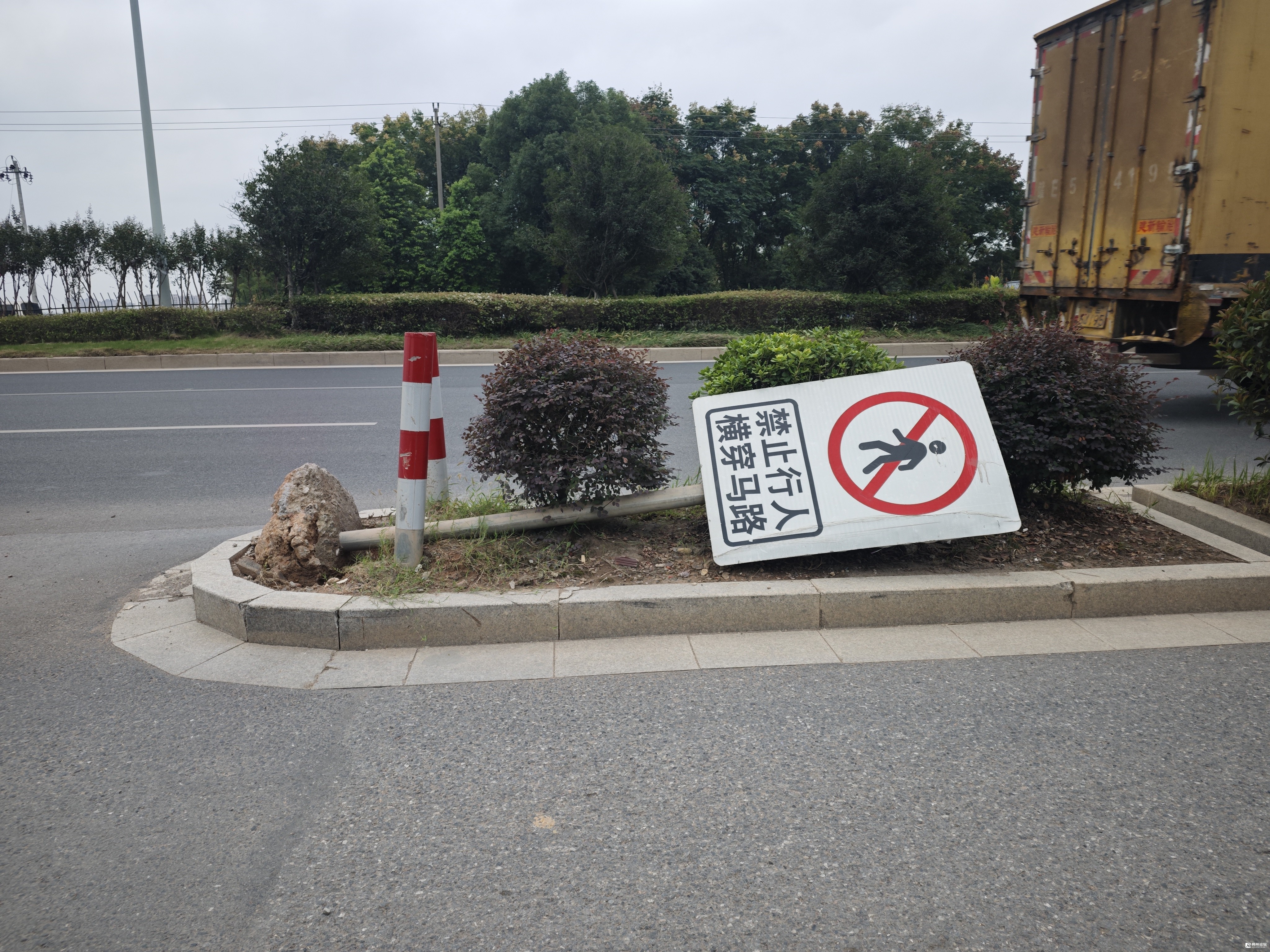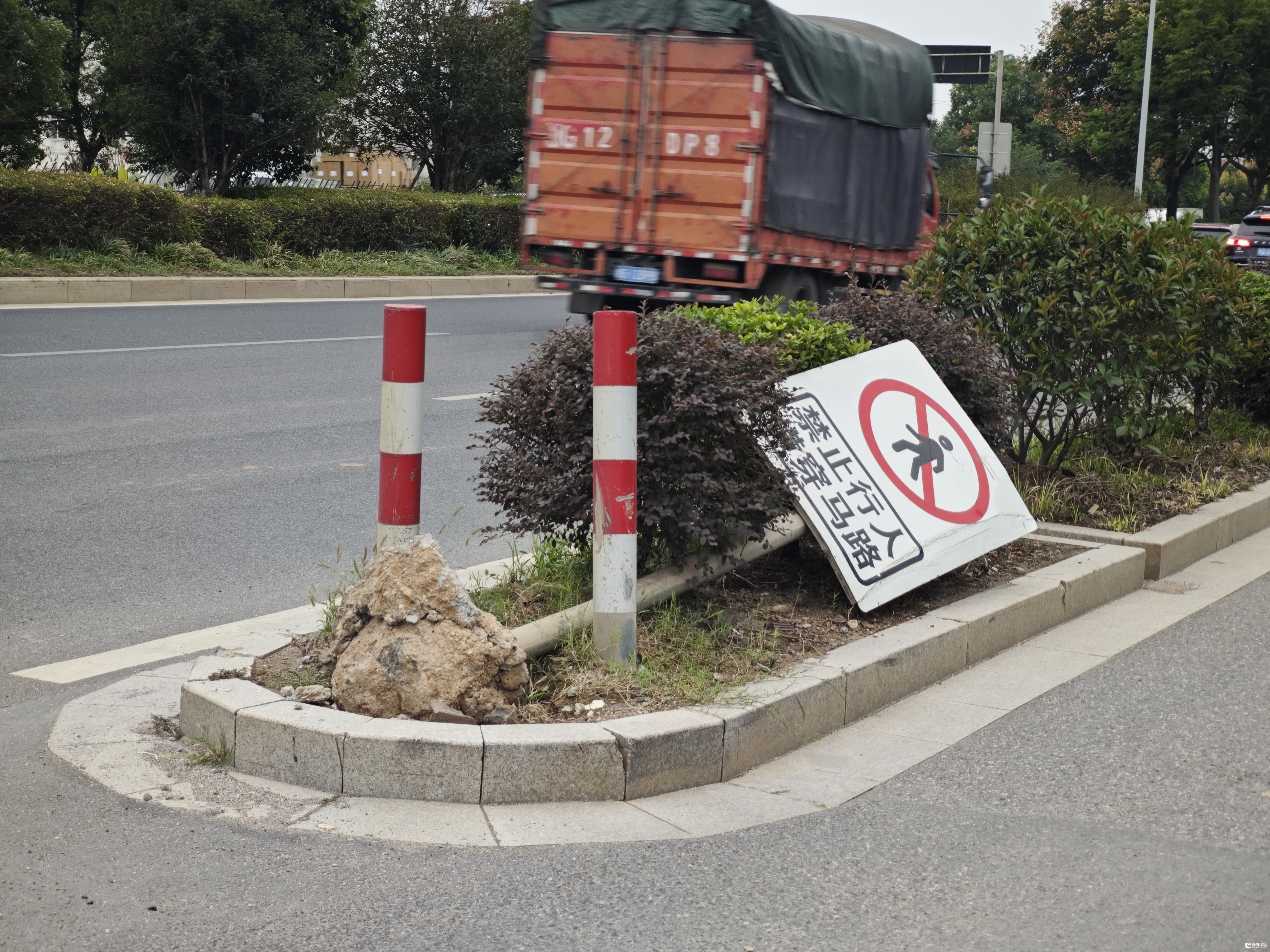 环城北路“祖科塘”段,一块禁令标志牌倒在地上。