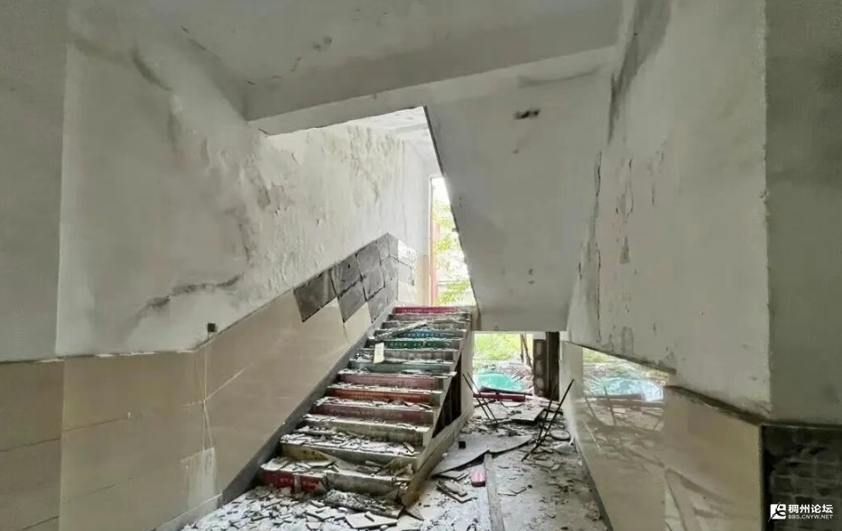 校园里随处可见玻璃碎片、瓷砖碎片和裸露的金属支架,稍有不慎便会划伤。部分墙面上,还贴有“全面监控、禁止入内”的警示标识。